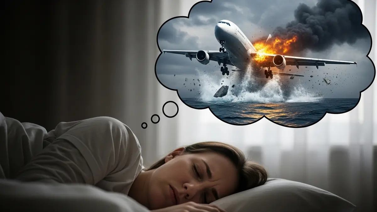 Esse sonho aparece muito em fases de ansiedade. Quando a mente está sobrecarregada, ela tende a criar imagens de perigo, queda, acidente e perda. O avião caindo é um símbolo fácil para representar tudo isso de uma vez.